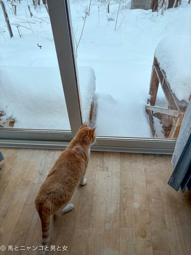 「けっこう積もってますなぁ。」火曜の夜から今朝まで降り続いた雨のような重い雪。 いつものように屋根から雪が落ちる音が怖いマロン&プリンは雪の···