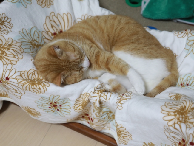 床暖房に猫。