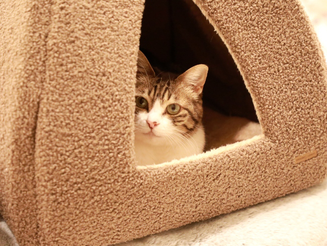ホットカーペット付きのテントベッドがぬくぬくで 寒がりなアミ姐さんがこもりっぱなしなのでかつては姐さん専用ハウスだった リビングの大箱の中の寝···